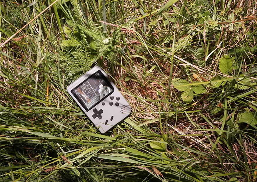 Once painted, the devices are carried into the forest and photographed at night, using flash. In these encounters, they appear as magical relics, as if they were archaeological traces of a lost techno-mystical civilization. The images evoke the uncanny kinship between the internet and the woods, echoing the iconography of online paranormal culture—haunted videos, abandoned cameras, glitches that rupture reality.